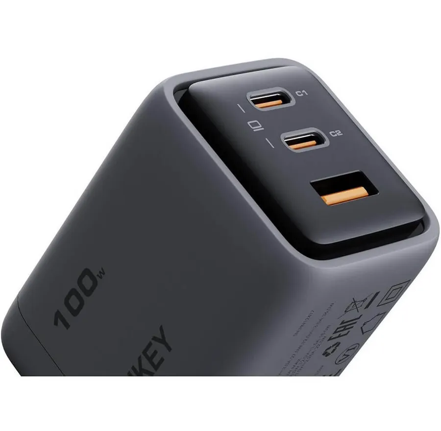 Блок питания оборудован тремя портами: двумя USB Type-C и одним USB-A. Это позволяет одновременно заряжать несколько устройств, экономя ваше время и пространство. Функция быстрой зарядки с мощностью до 100 Вт обеспечивает быструю подзарядку ваших гаджетов, будь то смартфон, планшет или ноутбук.