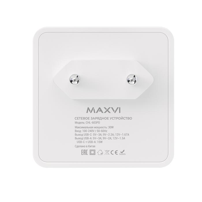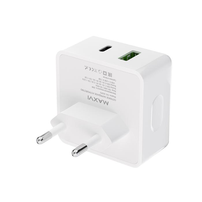 СЗУ Maxvi CHL-603PD - это универсальный сетевой адаптер с максимальной выходной мощностью 30Вт и портами USB-A и USB-C, который предназначен для заряда аккумуляторов Ваших мобильных устройств от сети переменного тока. Отличительной особенностью модели является поддержка функции быстрой зарядки по технологии Quick Charge 3.0 и Power Delivery 3.0. Корпус зарядного устройства имеет угловую форму, отличающуюся от большинства "классических зарядок", которая позволит обеспечить более комфортную работу, а также надежно защитить Ваши кабели во время зарядки различных устройств и гаджетов. Сетевой адаптер Maxvi CHL-603PD обладает несколькими степенями защиты, такими как: