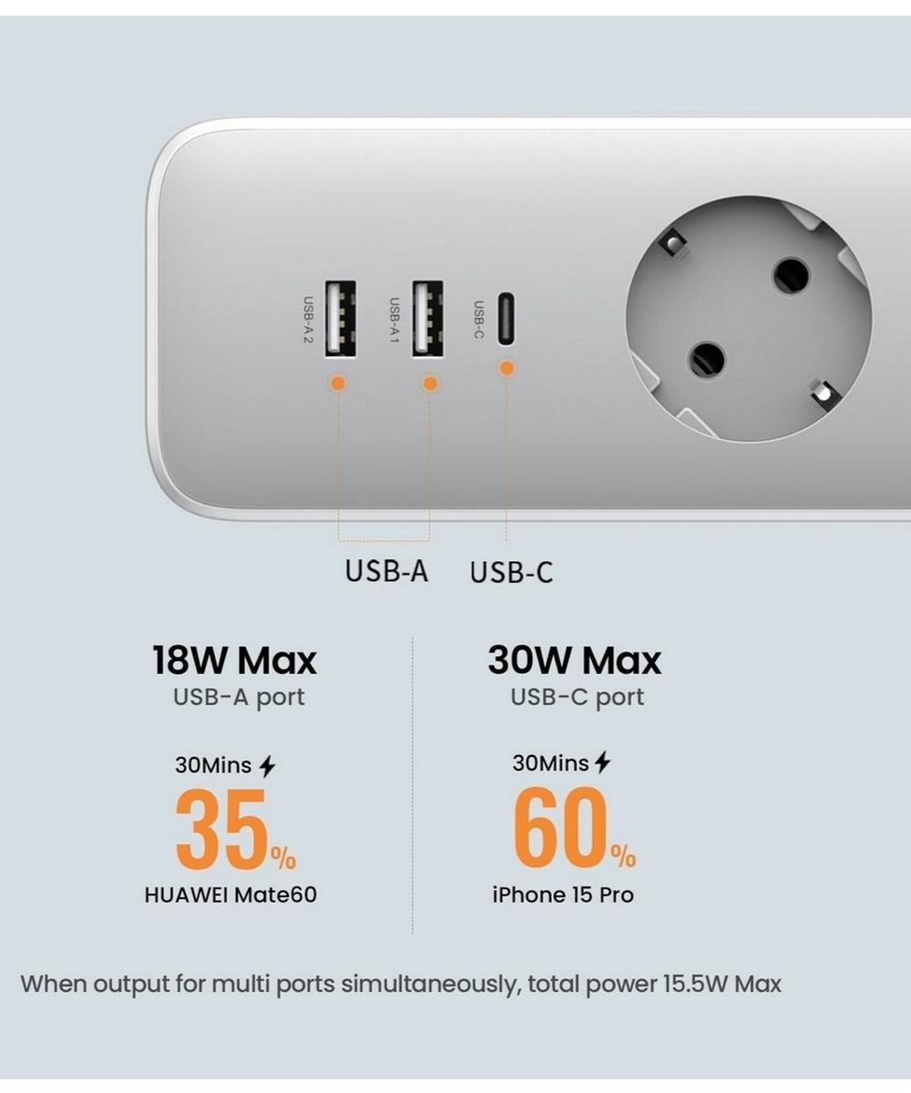 Все порты поддерживают соглашение о контроле качества (быстрая зарядка). Только одно зарядное устройство удовлетворяет все ваши потребности в зарядке.