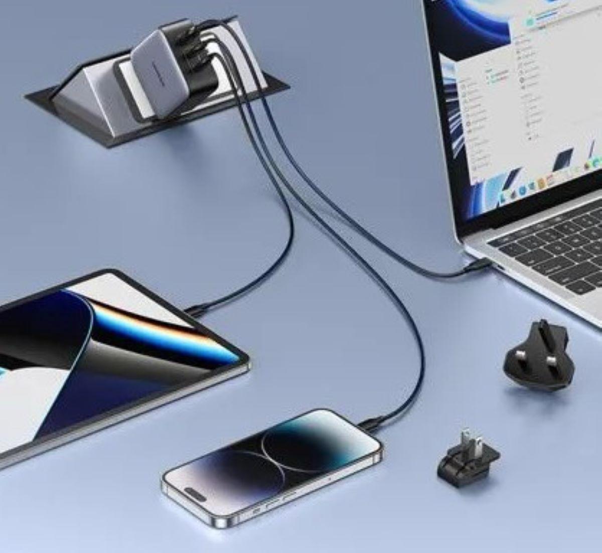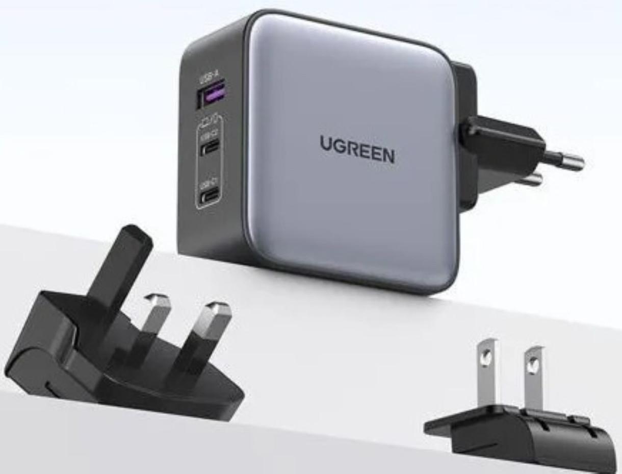 Зарядное устройство UGREEN CD296 Nexode 65W USB-A+2*USB-C GaN Fast Charger Interchangeable Plugs