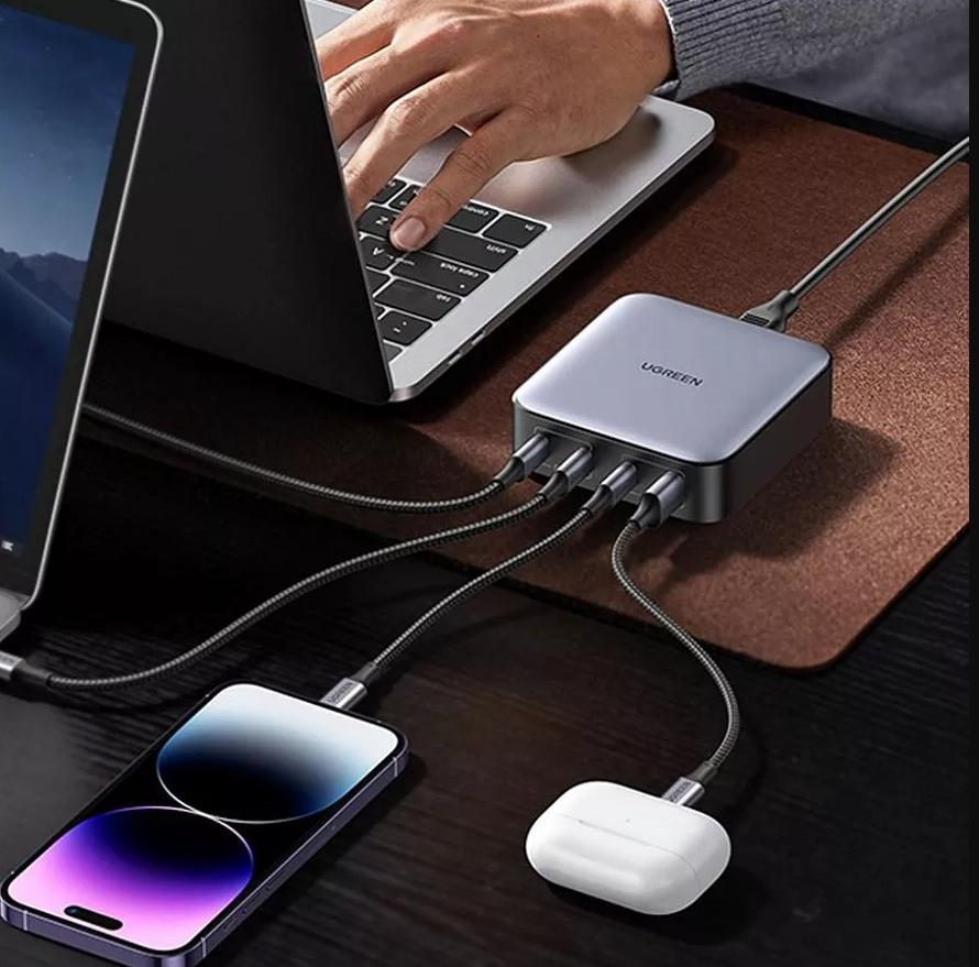 UGREEN Nexode Fast Desktop Charger GAN 3xUSB-C 1xUSB-A 100W Gray CD328 — это надежное и удобное зарядное устройство, которое позволяет заряжать несколько устройств одновременно и быстро.