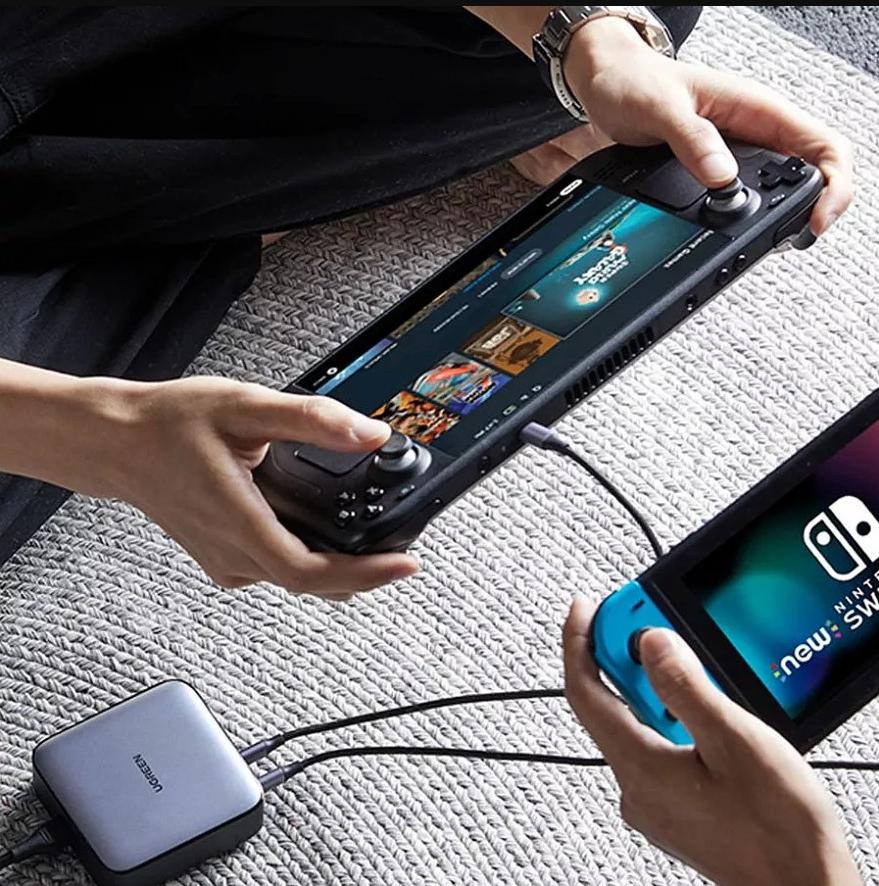 Зарядное устройство оснащено 3 портами USB-C и 1 портом USB-A, которые обеспечивают общую мощность до 100 Вт. Это позволяет быстро заряжать не только смартфоны и планшеты, но и более мощные устройства, такие как ноутбуки и игровые консоли.