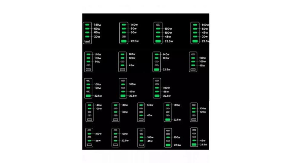 Благодаря отличной производительности зарядное устройство GaN может питать 3 ноутбука одновременно. С 4 портами USB-C и 1 портом USB-A зарядник USB C мощностью 300 Вт заряжает одновременно 5 устройств - от ноутбуков до планшетов и смартфонов, повышая вашу продуктивность в офисе. Зарядная станция для всего!