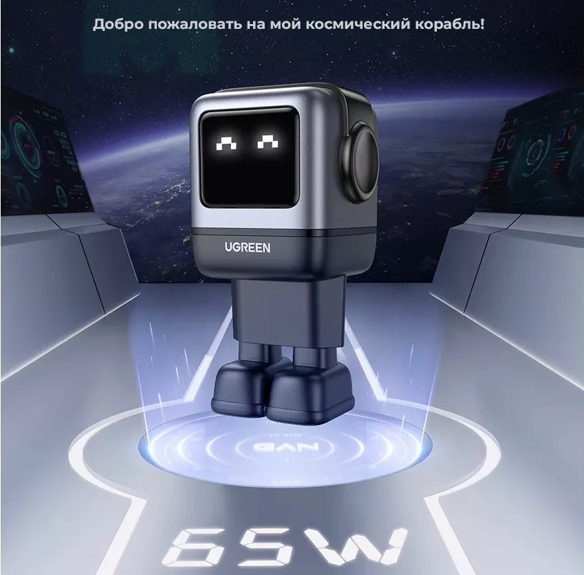 Зарядное устройство Ugreen Nexode RG (Robot GaN), 65 Вт в форме очаровательного маленького робота обязательно Вам понравится!