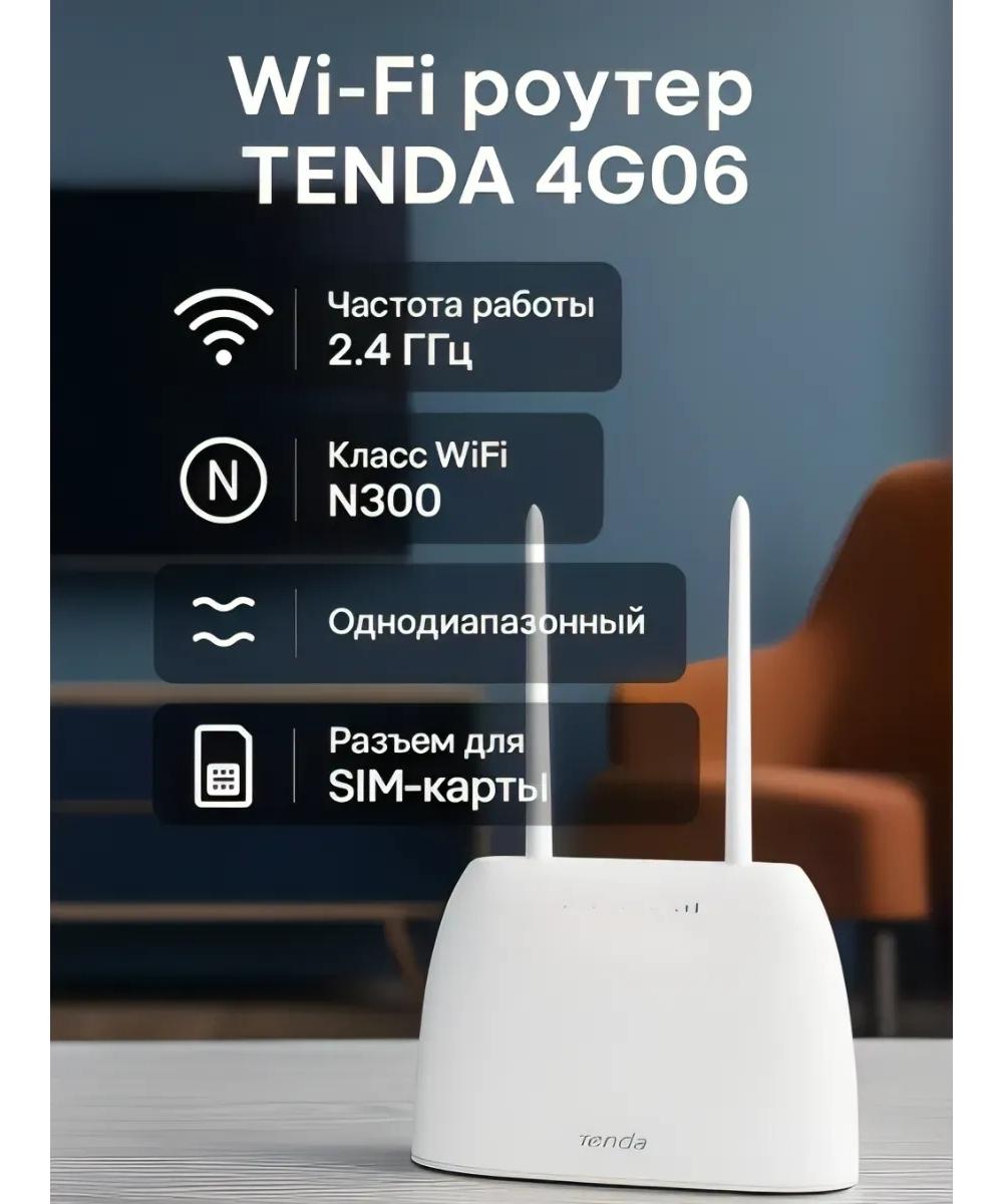 Tenda 4G06 - беспроводной маршрутизатор, который объединяет технологию LTE CAT4 и Ethernet, что обеспечивает высокоскоростной доступ к данным, а технологии VoLTE и CSFB позволяют пользоваться голосовыми услугами одновременно с доступом к Интернет.