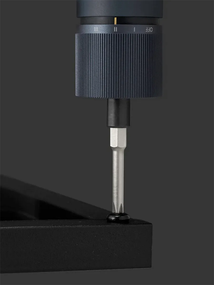Три уровня регулировки крутящего момента позволяют управлять скоростью вращения отвертки взависимости отзадач: уровень 1— для работы сгаджетами, уровень 2— для DIY-работ, уровень 3— для ремонта велосипедов или скейтбордов. Патрон с магнитным держателем исветодиодной подсветкой, которая загорается автоматически при использовании отвертки.