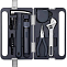 В комплект входят 10 бит из легированной стали S2, устойчивых к износу и деформации, а также набор ручных инструментов: молоток, плоскогубцы, регулируемый гаечный ключ, рулетка с автозамком и другие аксессуары. Все элементы аккуратно размещены в компактном пластиковом кейсе с ручкой.