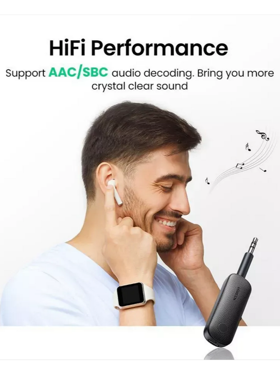 Передатчик и приемник UGREEN Bluetooth поддерживают режим передатчика и приемника. Оснащенный усовершенствованным чипсетом Bluetooth 5.0, он может обеспечивать стабильный и высококачественный звук. Таким образом, вы можете в полной мере наслаждаться беспроводным подключением дома, в машине или в поездке.