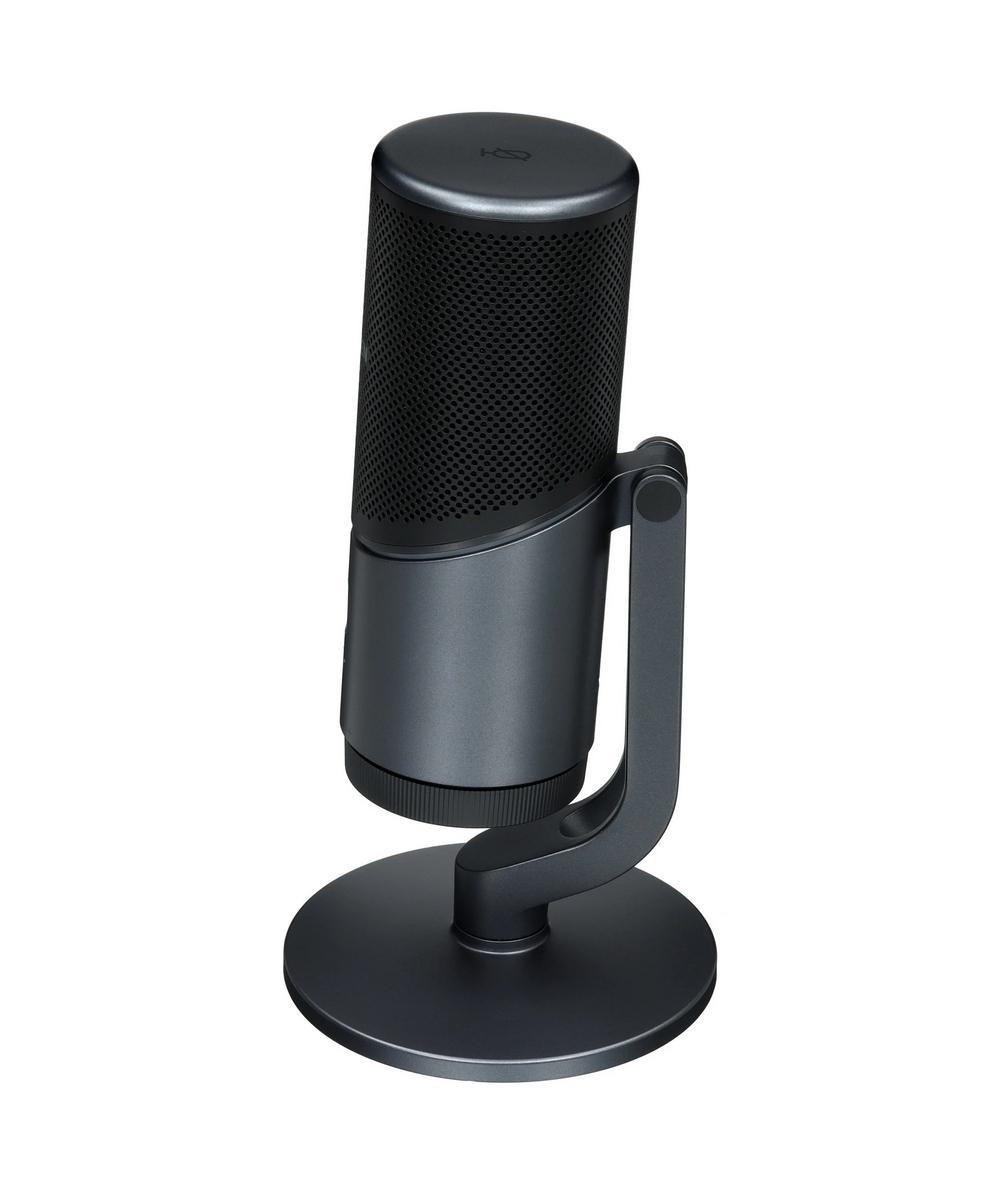 Для удобства управления микрофон оснащён функциональной кнопкой для переключения режимов работы, регулятором усиления громкости и подсветки, а также сенсорной кнопкой отключения звука. Это позволяет быстро изменять настройки во время использования.