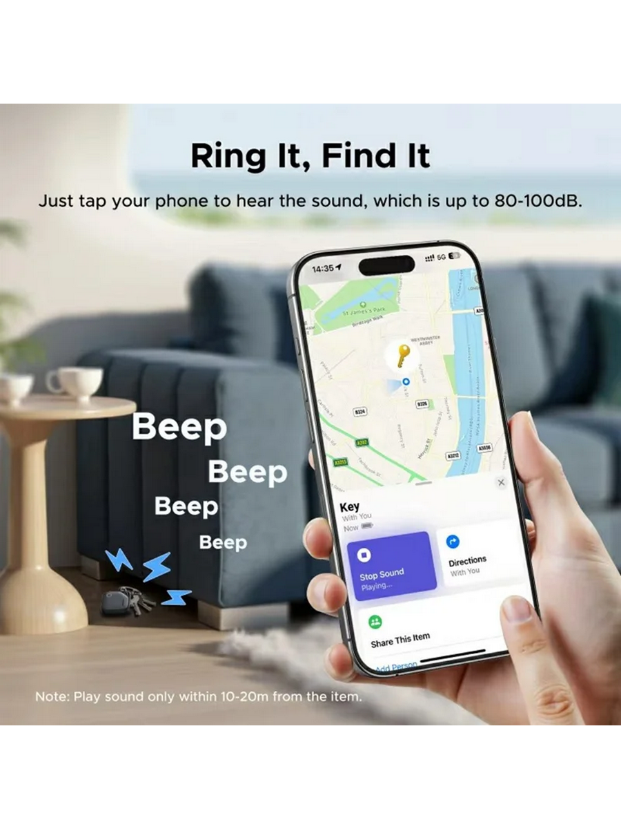 Громкий сигнал 80 дБ: Встроенный в трекер для кошелька зуммер издает мощный звуковой сигнал для поиска вещей. Просто следуйте за звуком, чтобы легко найти потерянные предметы.
