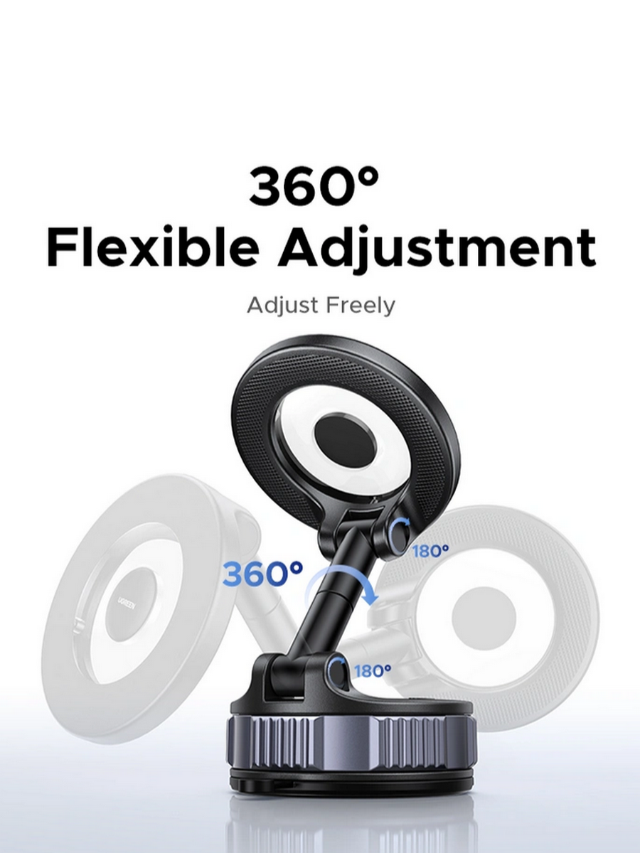 Универсальное и надежное крепление UGREEN LP970 — это премиальное решение для безопасного и удобного размещения смартфона в автомобиле, офисе или дома. Комбинация мощной магнитной площадки и ультрасильной присоски гарантирует, что ваше устройство останется неподвижным даже на ухабистой дороге. С регулируемыми углами наклона и поворота оно обеспечивает идеальный обзор для навигации, звонков и просмотра контента.
