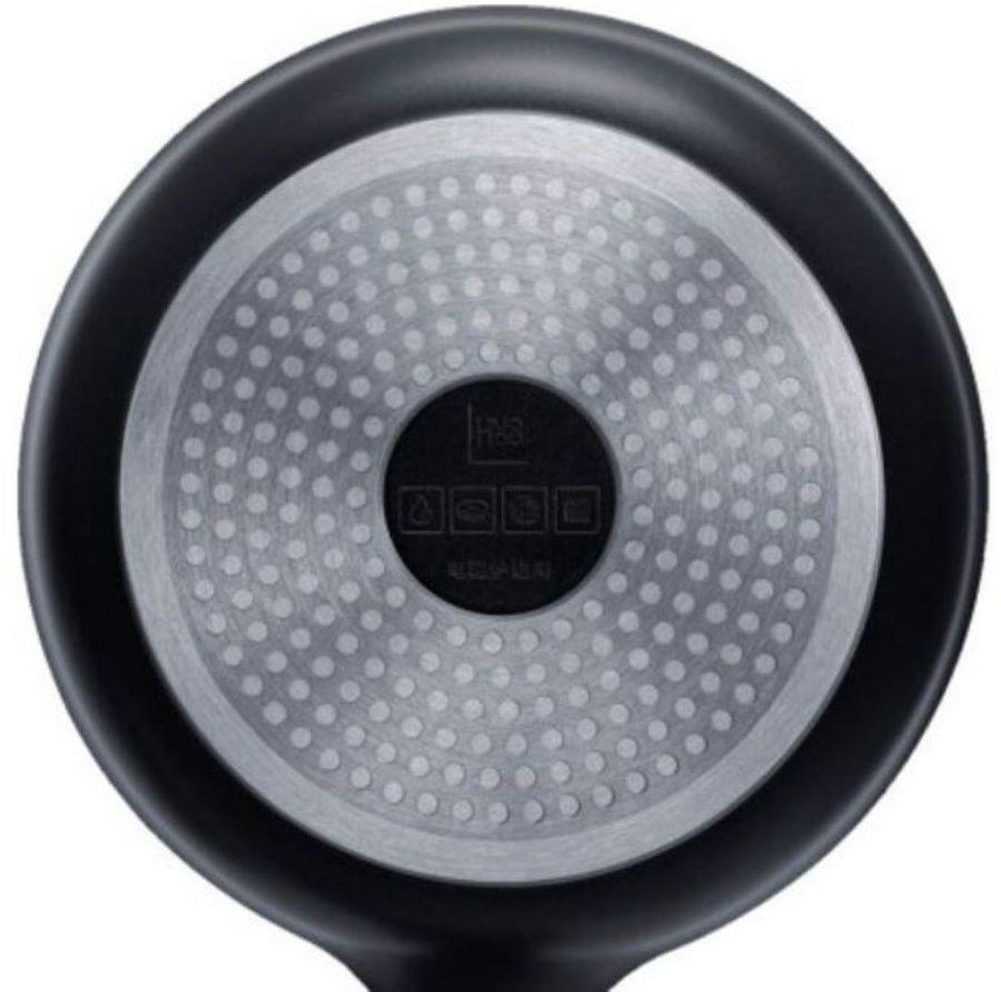 Утолщенное дно отличается оригинальной структурой и многослойностью, что обеспечивает равномерный прогрев.