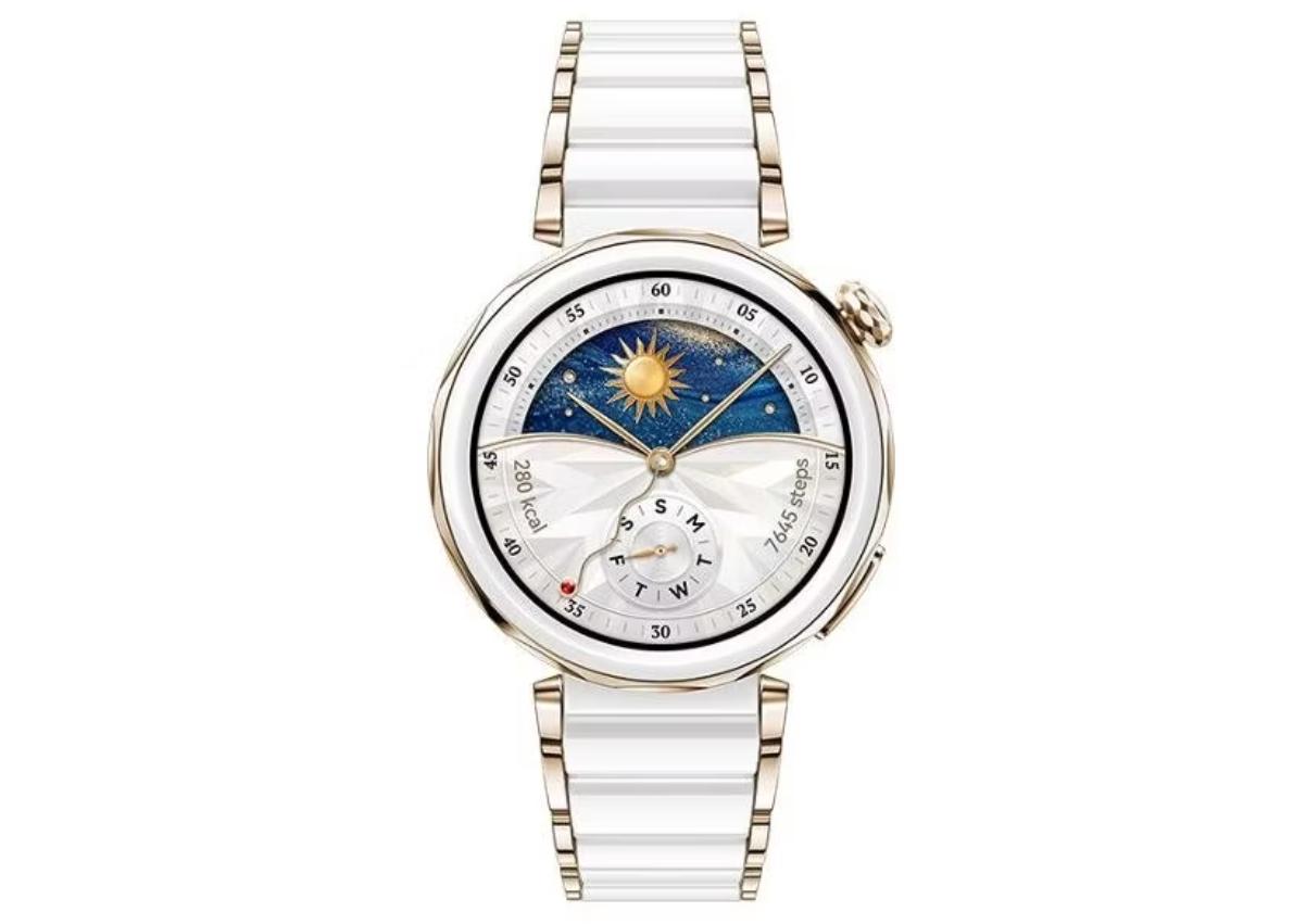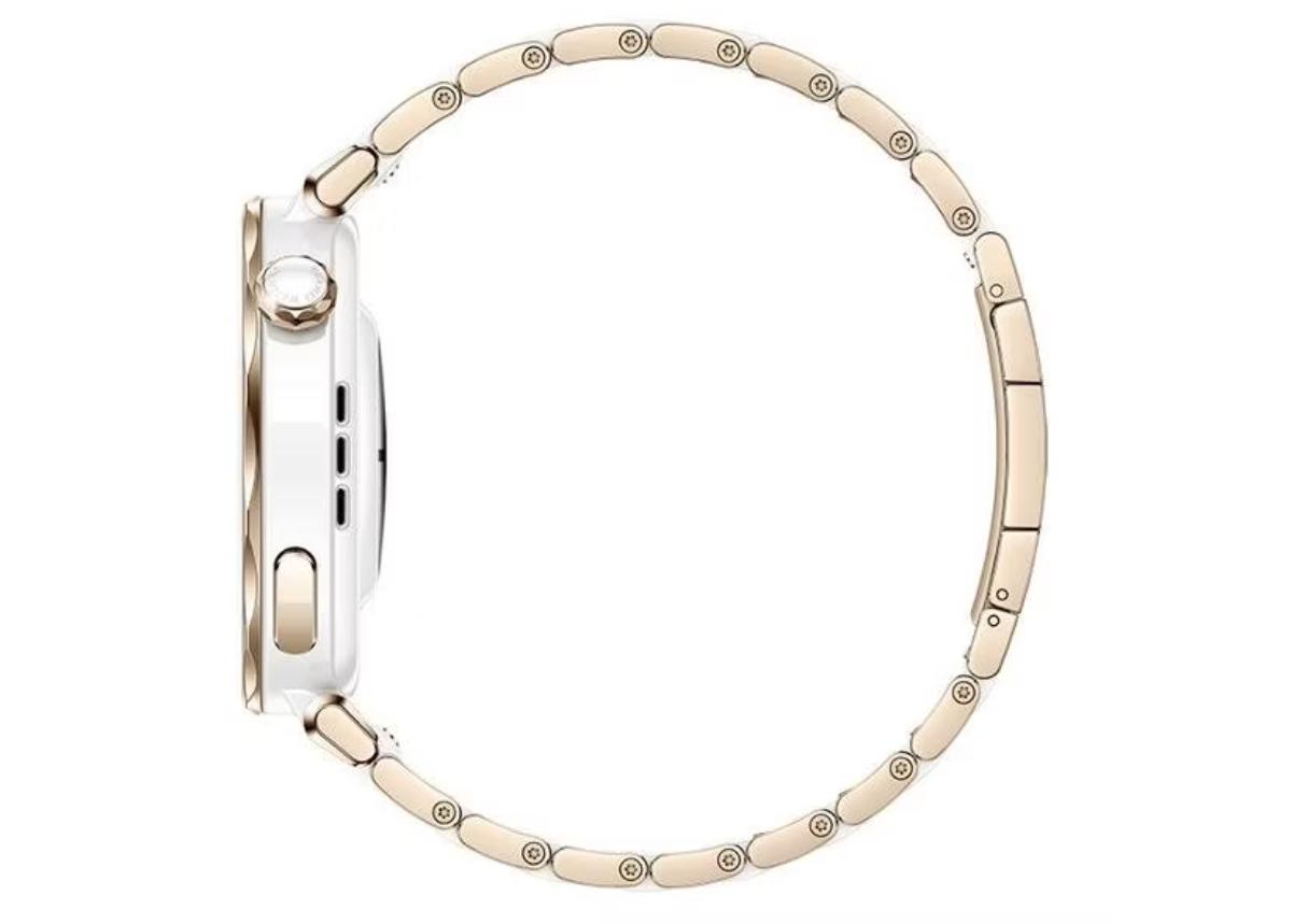 Устройство отличается лаконичным дизайном, круглый корпус с физическими кнопками выполнен из прочного металла, ремешок — из керамики. Крупный дисплей защищен ударопрочным и устойчивым к появлению царапин стеклом.