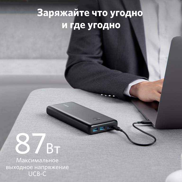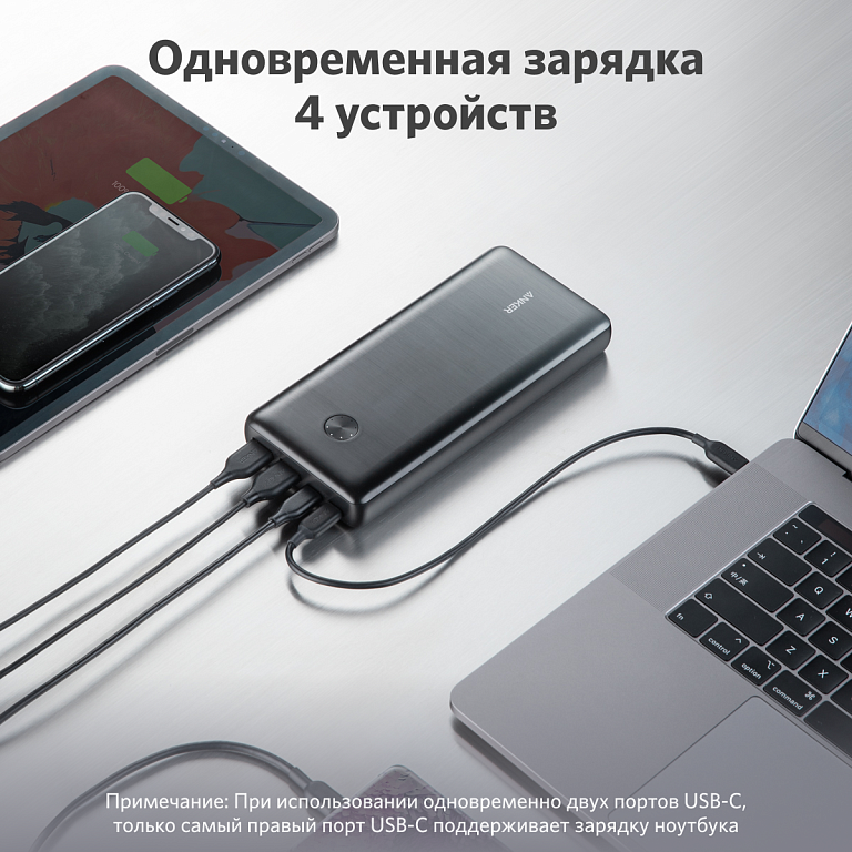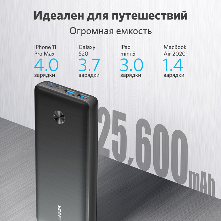 Поддерживает технологию интеллектуальной зарядки PowerIQ 3.0 и обеспечивает зарядку совместимых устройств в разы быстрее, чем стандартные сетевые зарядки. Система безопасности Anker MultiProtect сочетает в себе контроль температуры, защиту от высокого напряжения и многое другое, чтобы обеспечить безопасную зарядку для вас и ваших устройств. Корпус выполнен из прочного жаростойкого сплава; Разработан для обеспечения оптимальной зарядки устройств с низким энергопотреблением, таких как наушники, динамики Bluetooth и другие аксессуары. Для активации дважды нажмите кнопку питания или нажмите и удерживайте в течение 2 секунд, пока светодиодный индикатор не загорится зеленым. Портативный аккумулятор является универсальным: он совместим с различными мобильными устройствами, а именно: позволяет заряжать планшеты, смартфоны, Bluetooth-гарнитуры, колонки и другие гаджеты. Устройство обеспечивает бесперебойную работу любого девайса в течение длительного времени.