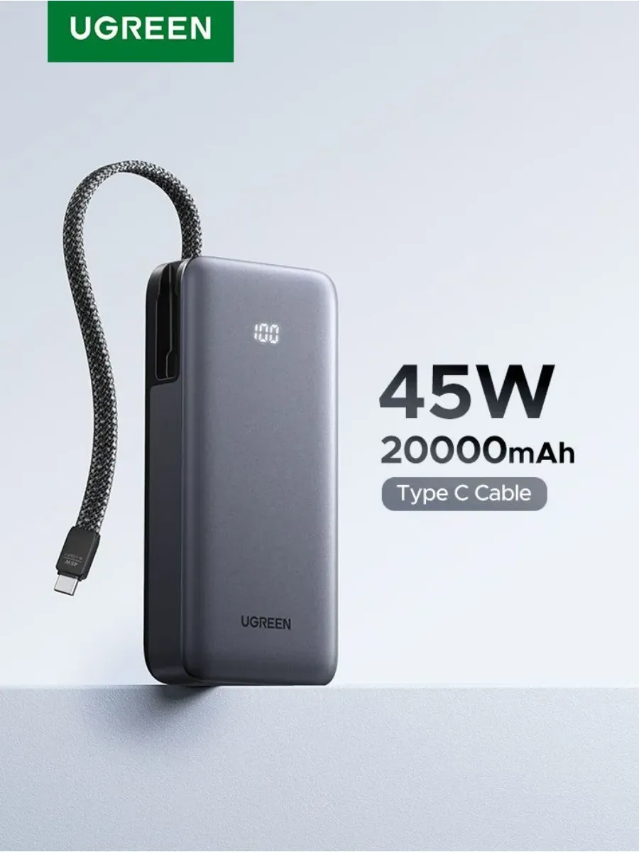 Внешний аккумулятор Ugreen PB536 PD емкостью 20000 mAh оснащен 2 разъемами Type-C + USB-A + встроенным кабелем, что позволяет подключить к нему одновременно до 3 устройств и не беспокоиться об их безопасности. Встроенная защита эффективно предотвращает их повреждение. Интеллектуальная система определяет тип подключенного устройства и автоматически регулирует силу тока и напряжения. Полная защита как аксессуара, так и заряжаемых устройств от перезарядки, перегрева и коротких замыканий.