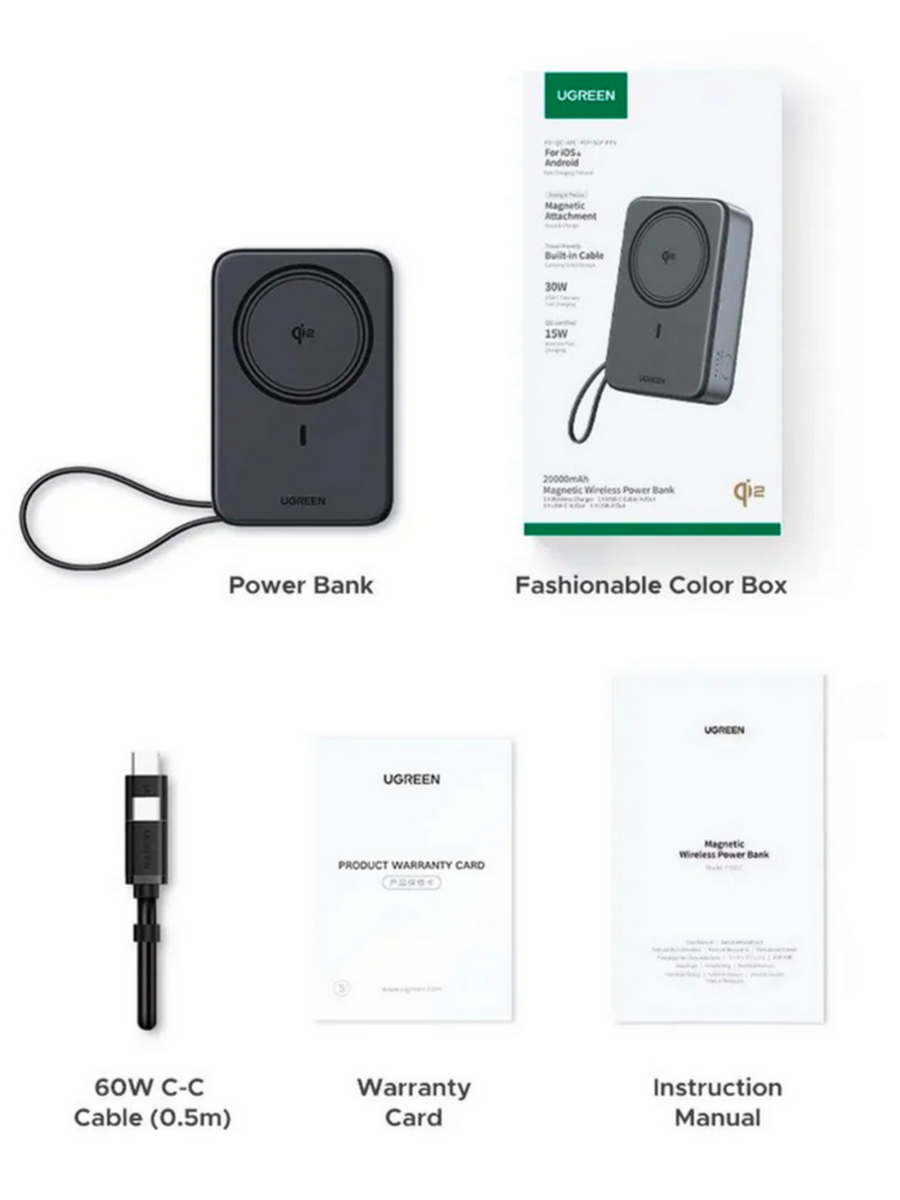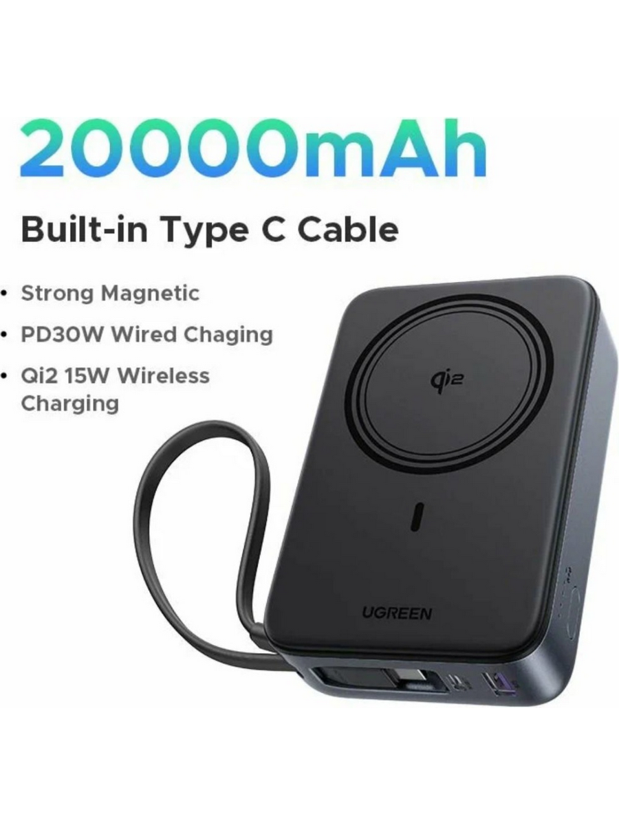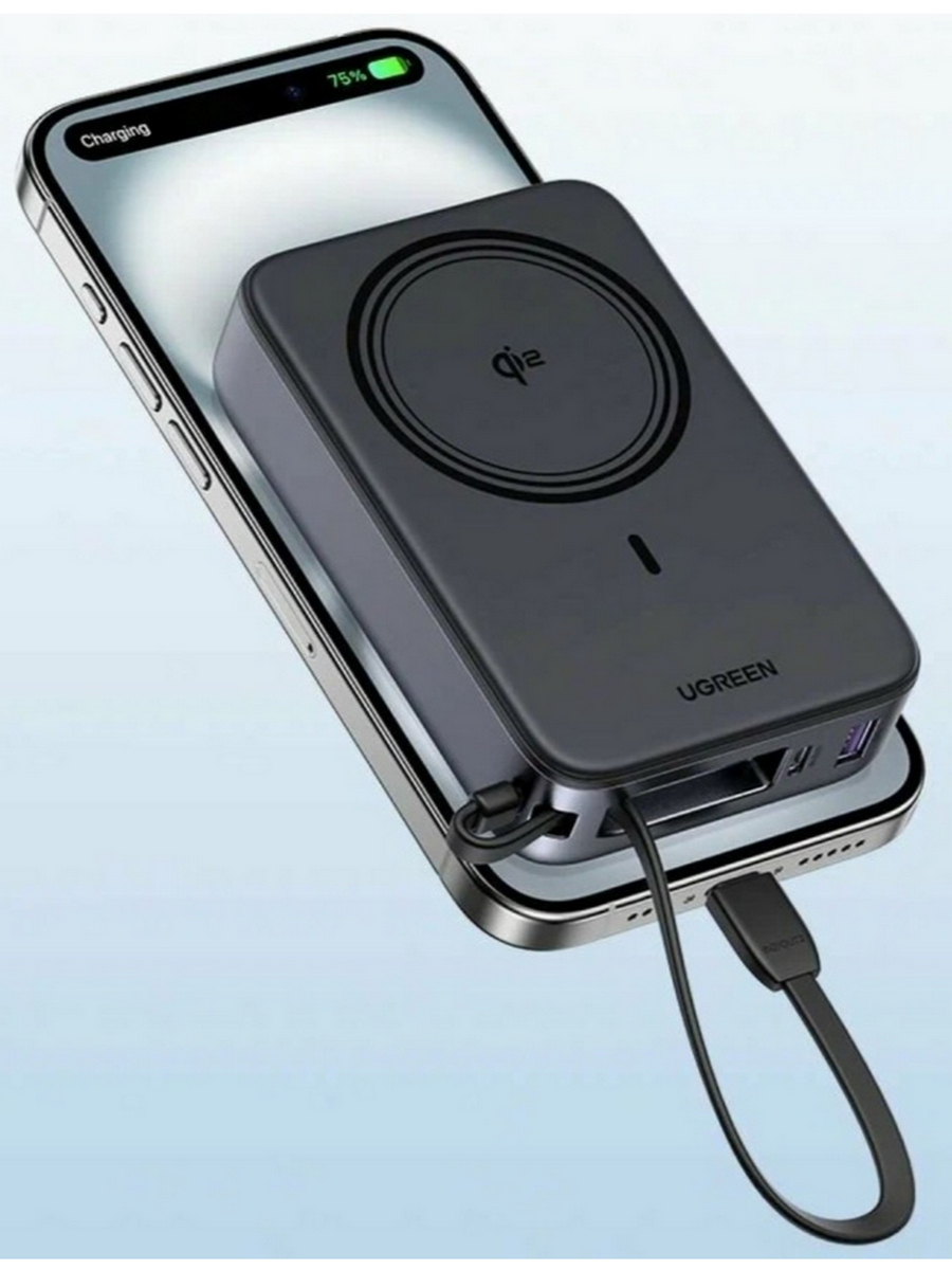 UGREEN PB567 (модель 55450B) — это флагманский внешний аккумулятор, который сочетает в себе внушительную емкость и новейшие стандарты беспроводной зарядки. Обладая запасом энергии в 20 000 мАч, этот пауэрбанк станет незаменимым спутником в длительных поездках, позволяя зарядить современный смартфон 3–4 раза.