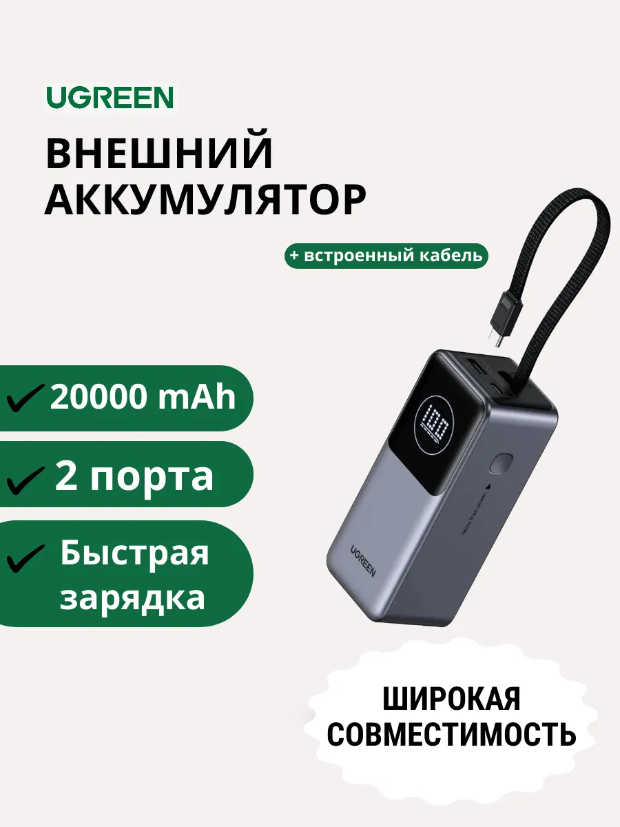 Внешний аккумулятор Ugreen PB723 (55365B) PD 20000mAh,130W оснащен 2 разъемами 1хType-C +1хUSB-A и встроенным кабелем USB-C, что позволяет подключить к нему одновременно несколько устройств и не беспокоиться об их безопасности. Встроенная защита эффективно предотвращает их повреждение. Интеллектуальная система определяет тип подключенного устройства и автоматически регулирует силу тока и напряжения. Полная защита как аксессуара, так и заряжаемых устройств от перезарядки, перегрева и коротких замыканий.