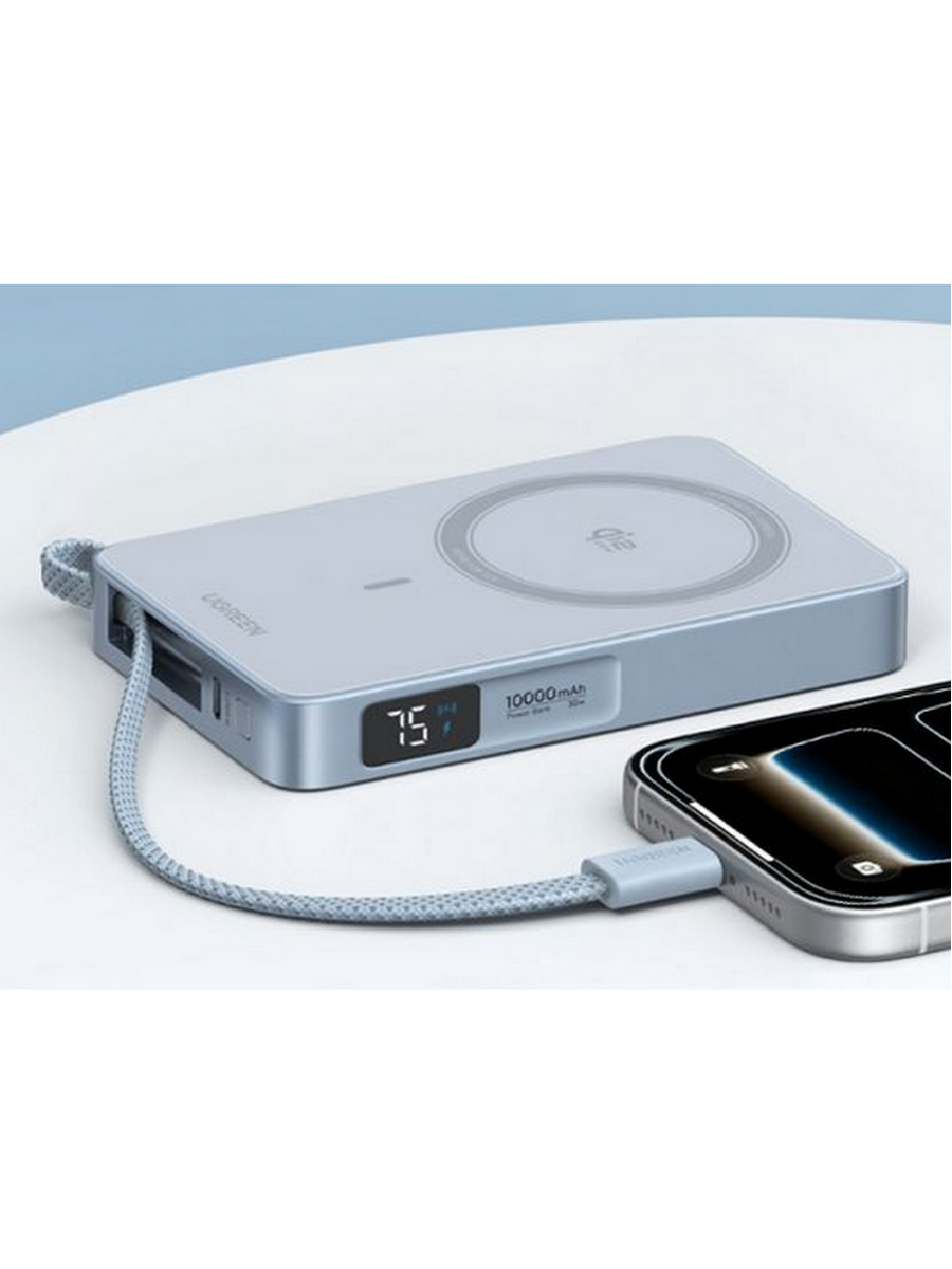 Ugreen PB773 позволяет быстро заряжать три устройства одновременно. Заряжайте смартфон по беспроводной сети, а наушники и другое устройство — с помощью встроенного кабеля USB Type-C и разъёма USB Type-C