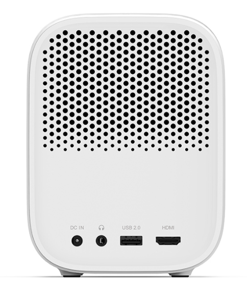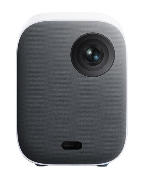 Mi Smart Projector 2 представляет собой компактный проектор белого цвета. В передней части он имеет тканевое покрытие, а остальная часть корпуса выполнена из пластика. Гаджет весит всего 1,3 кг, поэтому он не занимает много места. Его можно взять с собой куда угодно.