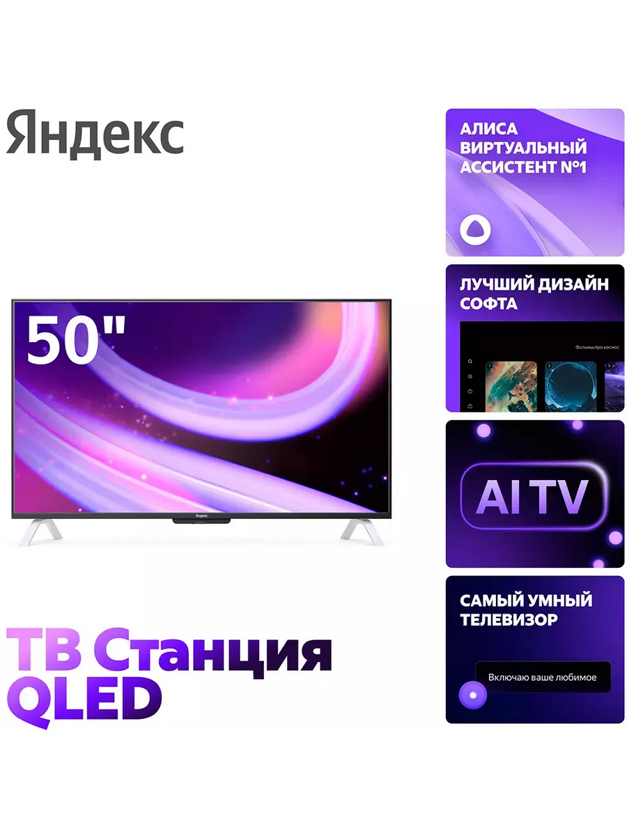 Яндекс ТВ Станция 2 50" с Алисой — это умный телевизор нового поколения, сочетающий в себе передовые технологии и уникальные возможности голосового управления.